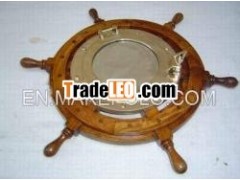 Brass Porthole mirror with wooden ship wheel1 High Quality2 At reasonable price